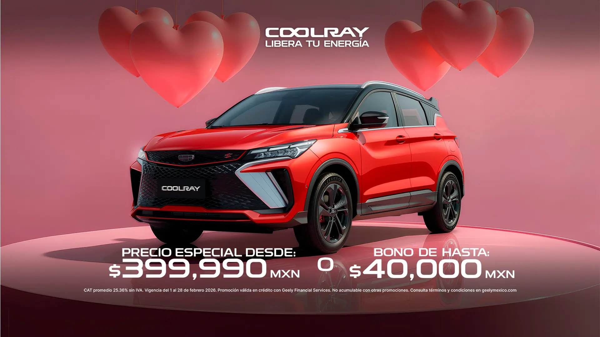 El bono de $40,000 MXN (sin IVA) aplica para Coolray 2026 en su versión GC y aplica exclusivamente a través de Geely Financial Services (BBVA México S.A., Institución de Banca Múltiple), y no es acumulable con otras promociones.