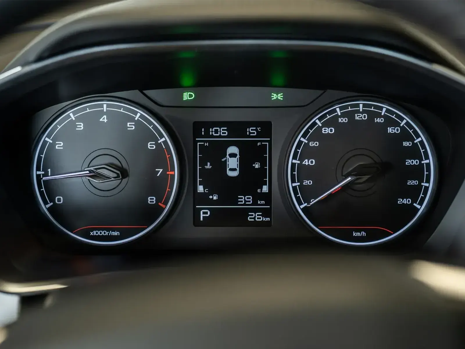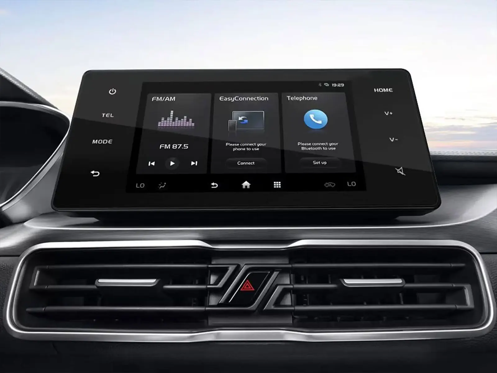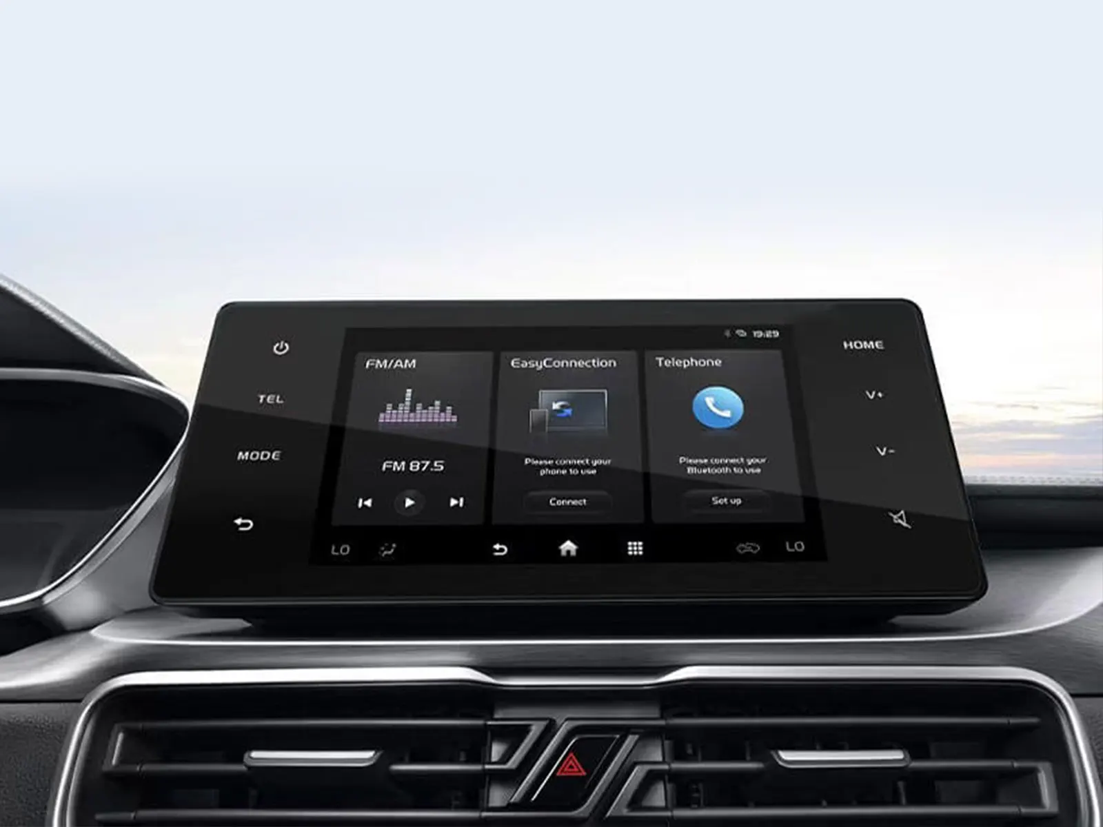 Pantalla de infoentretenimiento central de 8” que integra funciones del vehículo, multimedia y conectividad en una interfaz clara e intuitiva.