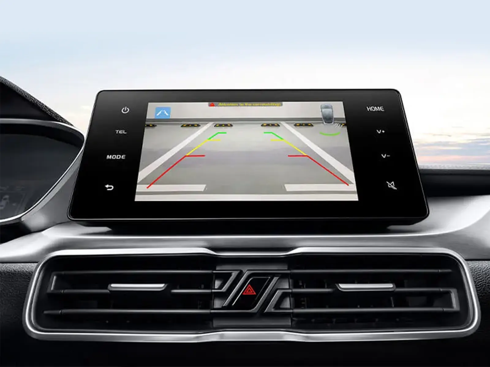 Cámara de reversa que facilita el estacionamiento y mejora la seguridad.